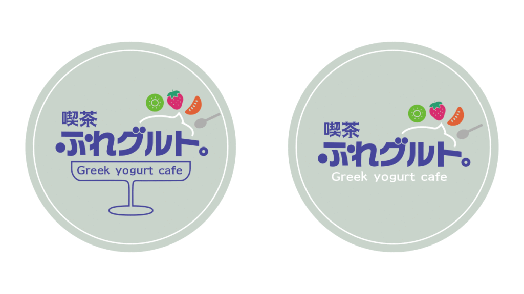 「新鮮なフルーツ×グリークヨーグルト」という店の特色と、「レトロ可愛い」店舗デザインの雰囲気をロゴに反映。